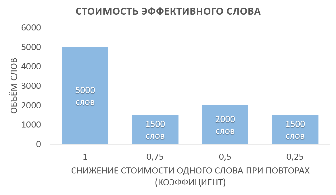Объём текста без повторов (будь то в рамках одной фразы, абзаца или даже нескольких файлов) называется эффективным объёмом для перевода, и именно на основе этой метрики рассчитывается стоимость проекта. Обычно эффективный объём гораздо меньше, чем просто сумма слов в тексте. В Solus Rex действуют скидки при следующих процентах повторов: